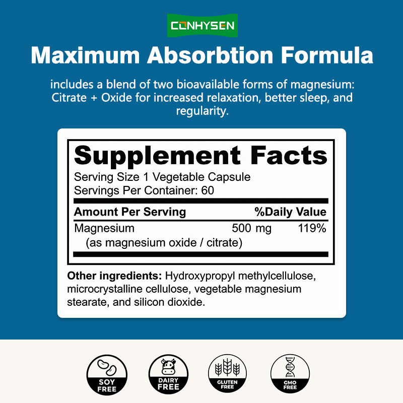 แคปซูลแมกนีเซียมเป็นผลิตภัณฑ์เสริมอาหารที่ประกอบด้วยธาตุแมกนีเซียมหรือสารประกอบแมกนีเซียมเป็นหลัก มีวัตถุประสงค์เพื่อให้ร่างกายได้รับแร่ธาตุแมกนีเซียมที่จำเป็น ในฐานะที่เป็นประจุบวกหลักอันดับที่สี่ในร่างกายมนุษย์ แมกนีเซียมมีบทบาทสำคัญในปฏิกิริยาทางชีวเคมีมากกว่า 300 ชนิด โดยมีส่วนร่วมในกระบวนการทางสรีรวิทยาที่สำคัญ เช่น การเผาผลาญพลังงาน การสังเคราะห์โปรตีน และการส่งสัญญาณประสาท แคปซูลแมกนีเซียมบรรจุเกลือแมกนีเซียมในรูปแบบต่างๆ เช่น แมกนีเซียมออกไซด์ แมกนีเซียมซิเตรต และแมกนีเซียมไกลซีน ภายในแคปซูล ซึ่งเป็นวิธีที่สะดวกและมีประสิทธิภาพในการเสริมแมกนีเซียมสำหรับผู้ที่มีปริมาณแมกนีเซียมไม่เพียงพอเนื่องจากการรับประทานอาหารที่ไม่หลากหลายหรือความต้องการทางสรีรวิทยาพิเศษ