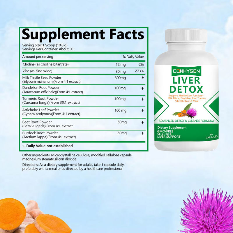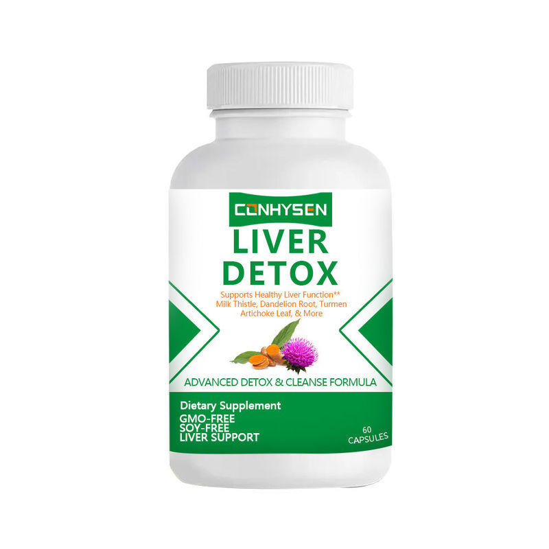 แคปซูลดีท็อกซ์ตับจากสมุนไพรแบบกำหนดเองสำหรับขายส่ง ปราศจาก GMO/ถั่วเหลือง