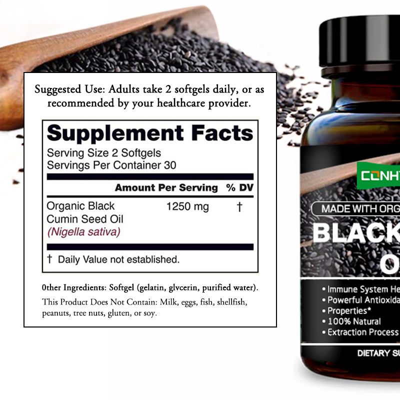แคปซูลนิ่มน้ำมันเมล็ดดำเป็นผลิตภัณฑ์เสริมอาหารเพื่อสุขภาพจากธรรมชาติและมีประสิทธิภาพสูง ผลิตจากสารสกัดคุณภาพสูงจากน้ำมันเมล็ดดำ น้ำมันเมล็ดดำอุดมไปด้วยเบอร์เบอรีน กรดไขมันไม่อิ่มตัว และส่วนผสมออกฤทธิ์ต่างๆ ซึ่งสามารถช่วยเสริมสร้างการทำงานของระบบภูมิคุ้มกันของร่างกายมนุษย์ได้อย่างมีนัยสำคัญ และช่วยให้ร่างกายต้านทานการโจมตีจากภายนอกได้ การศึกษาทางคลินิกแสดงให้เห็นว่าน้ำมันเมล็ดดำสามารถกระตุ้นเซลล์ภูมิคุ้มกันและเพิ่มความต้านทานของร่างกาย ทำให้เหมาะอย่างยิ่งสำหรับผู้ที่มีภูมิคุ้มกันต่ำ