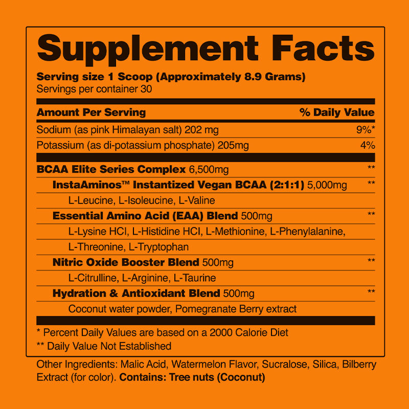ส่วนประกอบ:โซเดียม โปแทสเซียม BCAA Elite Series Complex BCAA Vegan ที่เป็นตัวอย่าง ผสมอะมิโนแอซิดสําคัญ ผสมไนโตรคอไซด์ บูสเตอร์