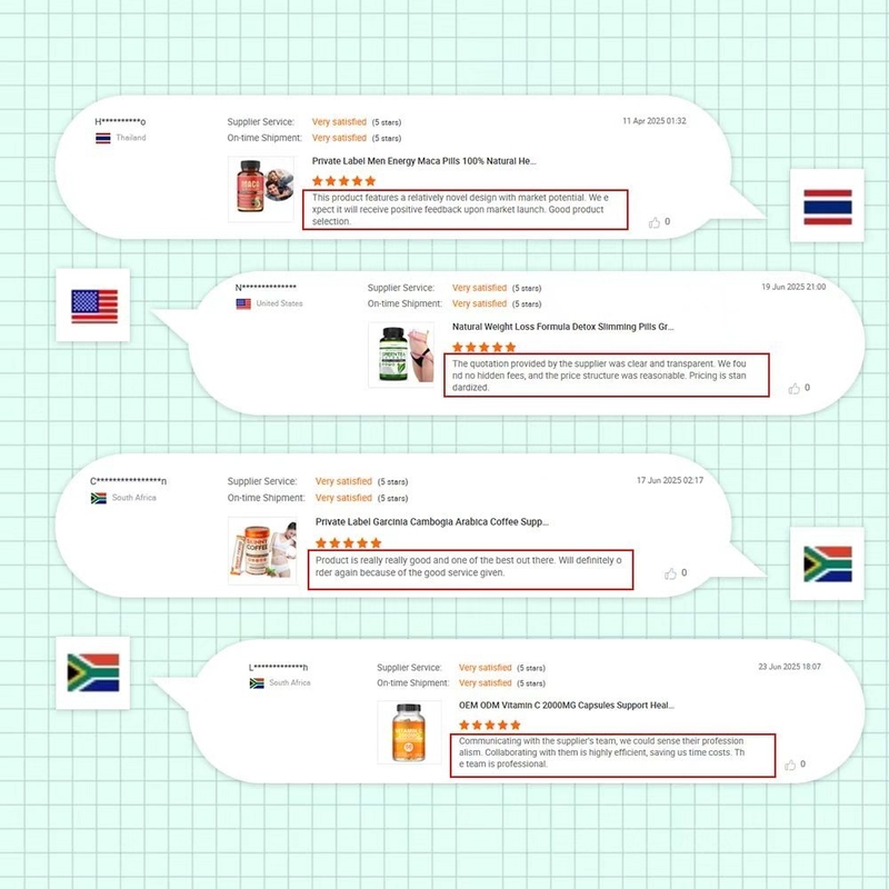 ผลิตภัณฑ์ OEM อาหารเสริมของเรามาพร้อมกับการสนับสนุนด้านเทคนิคและบริการที่เชื่อถือได้ เพื่อให้มั่นใจว่าลูกค้าของเราพึงพอใจกับการซื้อของพวกเขา: