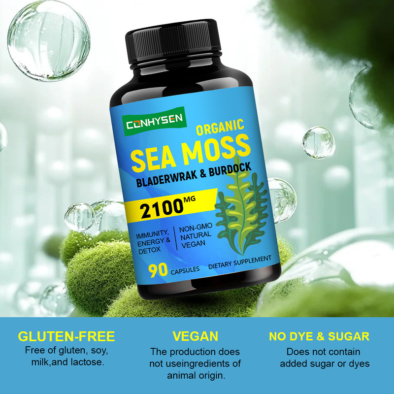 แคปซูล Sea Moss ที่เปิดตัวโดยGuangdong Kangsheng Pharmaceutical Technology Co., Ltd.เป็นผลิตภัณฑ์เสริมอาหารจากธรรมชาติที่ได้มาจากบริเวณทะเลบริสุทธิ์ แคปซูลแต่ละเม็ดทำจากสาหร่ายไอริชคุณภาพสูงเป็นวัตถุดิบและใช้เทคโนโลยีสมัยใหม่ในการสกัดส่วนประกอบทางโภชนาการที่เข้มข้น ผลิตภัณฑ์นี้อุดมไปด้วยแร่ธาตุ 92 ชนิดที่ร่างกายมนุษย์ต้องการ รวมถึงไอโอดีน แคลเซียม แมกนีเซียม เหล็ก และธาตุอื่นๆ นอกจากนี้ยังเพิ่มวิตามินบีรวมและวิตามินซีเป็นพิเศษเพื่อช่วยเสริมสร้างการทำงานของระบบภูมิคุ้มกัน แคปซูลนี้มีส่วนประกอบของอัลจิเนตตามธรรมชาติ ซึ่งช่วยรักษาสุขภาพของลำไส้และส่งเสริมการย่อยอาหารและการดูดซึม สารอาหารจากพืชทะเลที่เป็นเอกลักษณ์เฉพาะตัวสามารถช่วยปรับปรุงสภาพผิวและเพิ่มความยืดหยุ่นของข้อต่อ