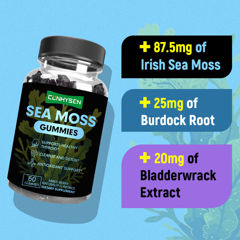 โรงงาน Burdock Sea Moss Gummies ปรับแต่งเองเพื่อเสริมสร้างสุขภาพต่อมไทรอยด์