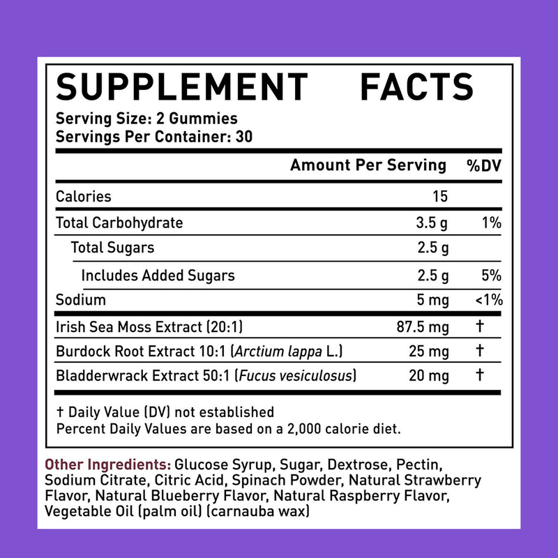 กัมมี่ Sea Moss นี้เปิดตัวโดยGuangdong Kangsheng Pharmaceutical Technology Co., Ltd. ผลิตจากสาหร่ายทะเลไอริชคุณภาพสูงเป็นวัตถุดิบหลักและผ่านการขัดเกลาด้วยเทคโนโลยีสมัยใหม่ กัมมี่ Sea Moss ทำจากสารสกัดจากพืชธรรมชาติบริสุทธิ์และไม่มีสีเทียม สารกันบูด หรือกลูเตน เหมาะสำหรับคนทุกประเภท ผลิตภัณฑ์นี้ได้รับการคิดค้นทางวิทยาศาสตร์เพื่อรักษาส่วนประกอบร่องรอย 72 ชนิด เช่น ไอโอดีน แคลเซียม และแมกนีเซียมจากสาหร่ายทะเลอย่างสมบูรณ์แบบ มีการเติมน้ำผลไม้จากธรรมชาติเพื่อปรุงแต่งรสชาติที่เหมาะสำหรับทั้งเด็กและผู้ใหญ่ ผลิตภัณฑ์นี้เหมาะอย่างยิ่งสำหรับผู้ที่มีภูมิคุ้มกันต่ำ ผู้ที่มักจะนอนดึก และผู้ที่มีอาหารไม่สม่ำเสมอ สูตรเฉพาะของ Guangdong Kangsheng Pharmaceutical Technology Co., Ltd. ช่วยเพิ่มสมรรถภาพทางกาย ปรับปรุงการทำงานของระบบย่อยอาหาร และส่งเสริมการเผาผลาญ