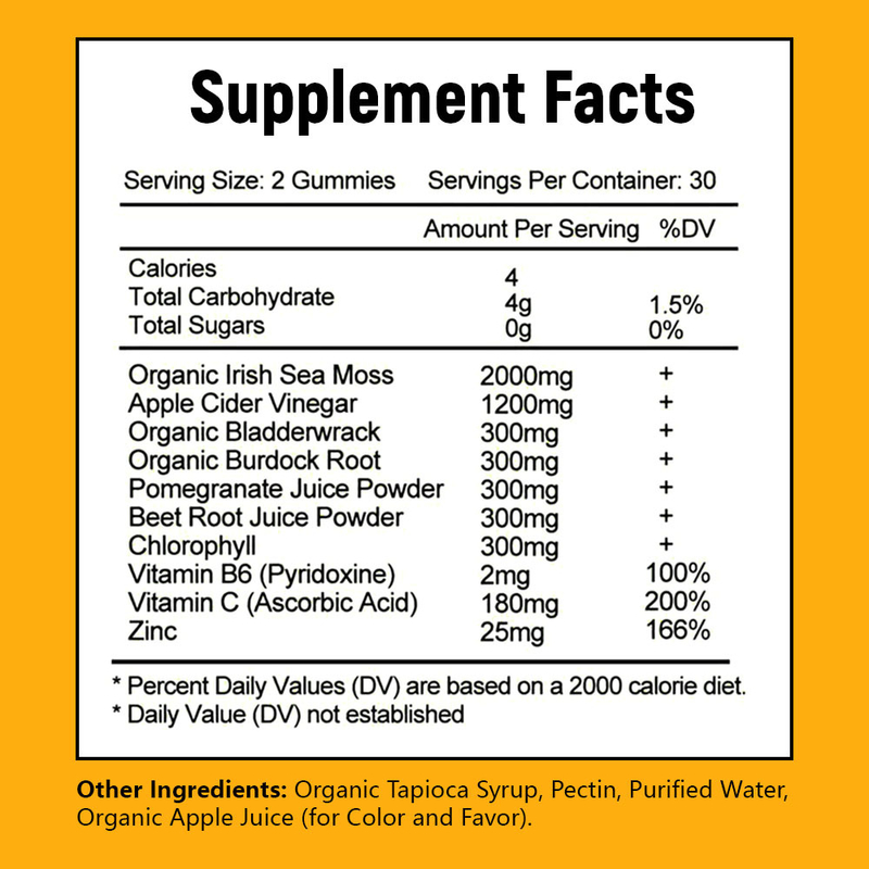 ผงทะเลไอริชอาร์แกนิค, ผงกระจกกระจกกระจกกระจก, รากเบอร์ด็อกอาร์แกนิค, ผงมะเขือเทศแอปเปิ้ล, ผงมะเขือเทศ, ผงมะเขือเทศ, สังกะสี, วิตามินบี 6, วิตามินซี, คลอโรฟิล