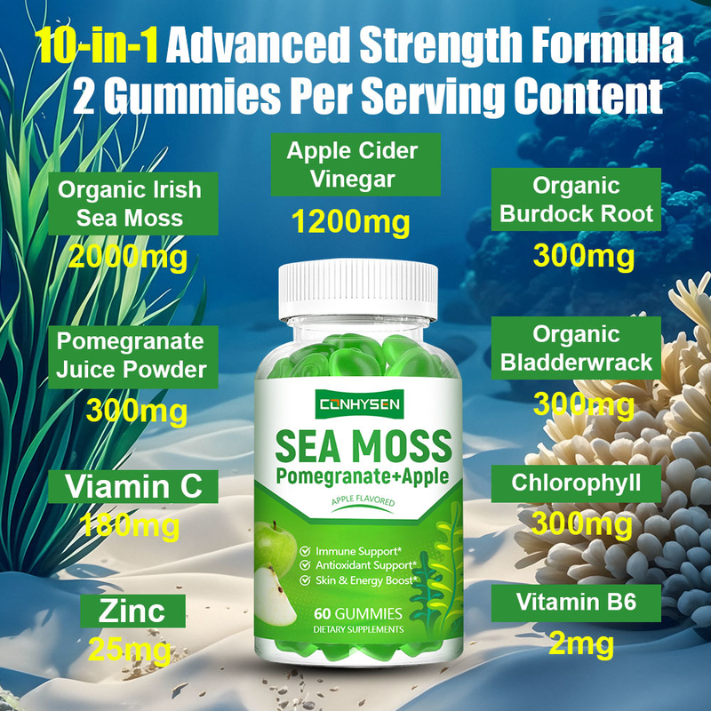 กัมมี่ Sea Moss แอปเปิลทับทิม สนับสนุนสารต้านอนุมูลอิสระ OEM/ODM Custom