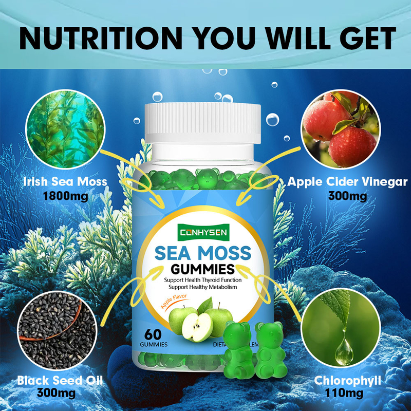 ขายปลีก Custom Sea Moss Gummies Apple Taste สนับสนุนการเผาผลาญของร่างกายที่ดี