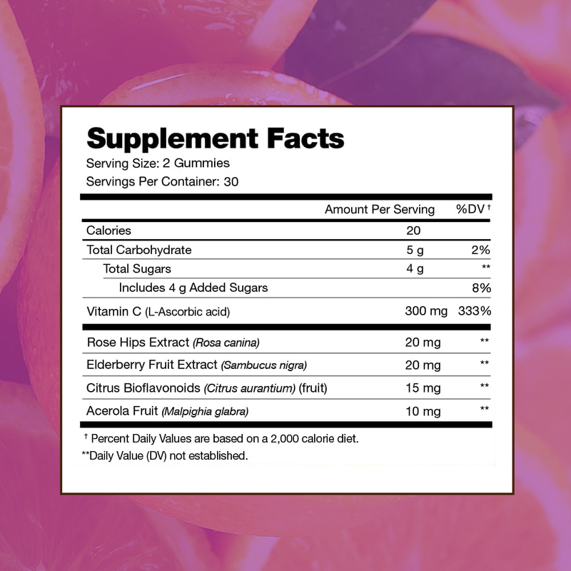 วิตามินซี, สารสกัดจากโรสฮิป, สารสกัดจากผลเอลเดอร์เบอร์รี่, ไบโอฟลาโวนอยด์จากซิตรัส, ผลอะเซโรลา