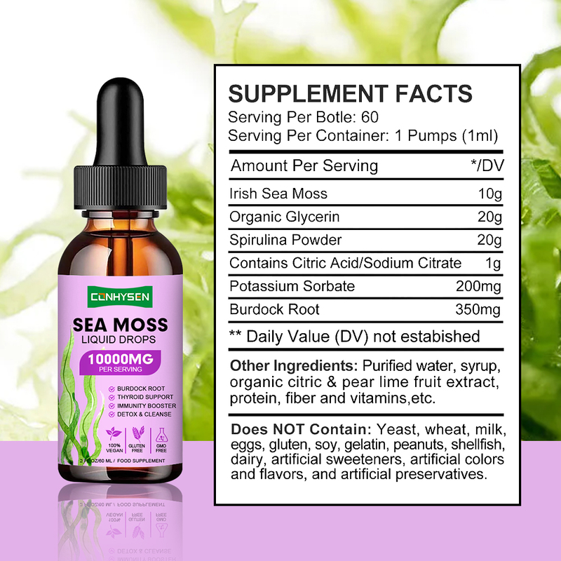 ผลิตภัณฑ์เสริมอาหารแบบหยด Sea Moss Organic คุณภาพพรีเมี่ยม สำหรับผู้ใหญ่