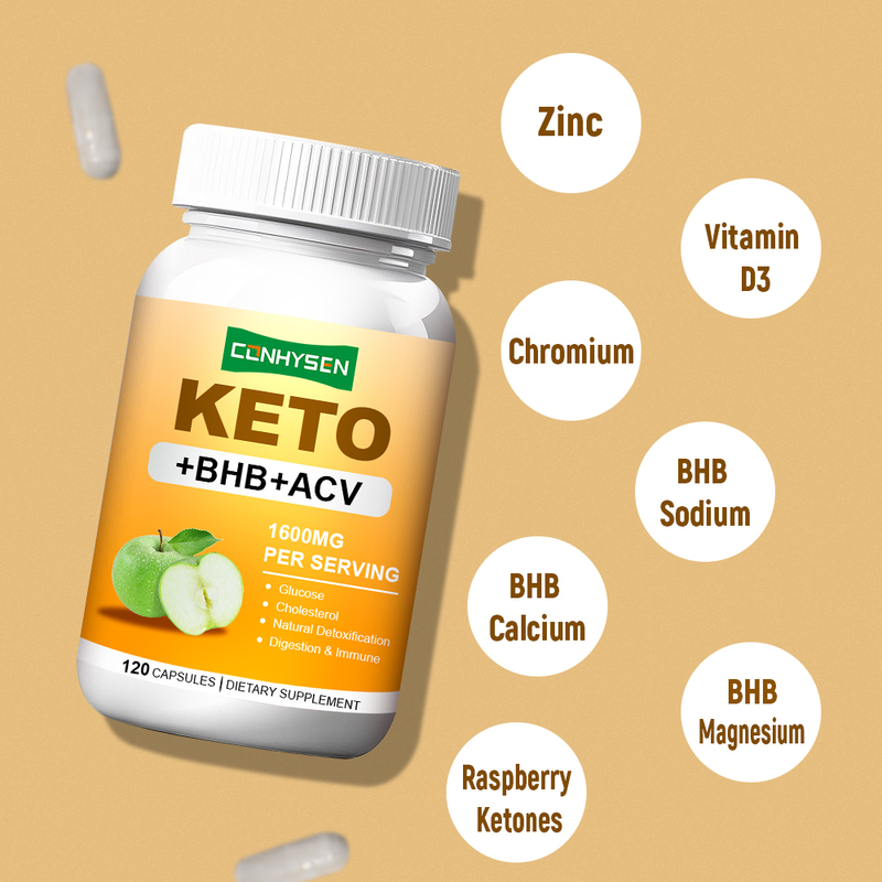 Keto Capsules with BHB ACV 1600mg Factory Direct ช่วยเรื่องการย่อยอาหารและเสริมภูมิคุ้มกัน