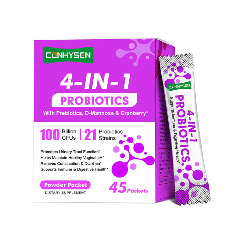 โปรไบโอติก 4-ใน- 1 พาวเวอร์ ผลิตโดยบริษัท กวางดง คังเชง เทคโนโลยียา จํากัดมีสูตรโปรบิโอติกที่มีผลงานที่ถูกเลือก ด้วยการเพิ่มสารสกัดแครนเบอรี่รักษาความสมดุลทางชีวภาพของลําไส้, และลดความเสี่ยงของการติดเชื้อทางเดินปัสสาวะอย่างสําคัญ