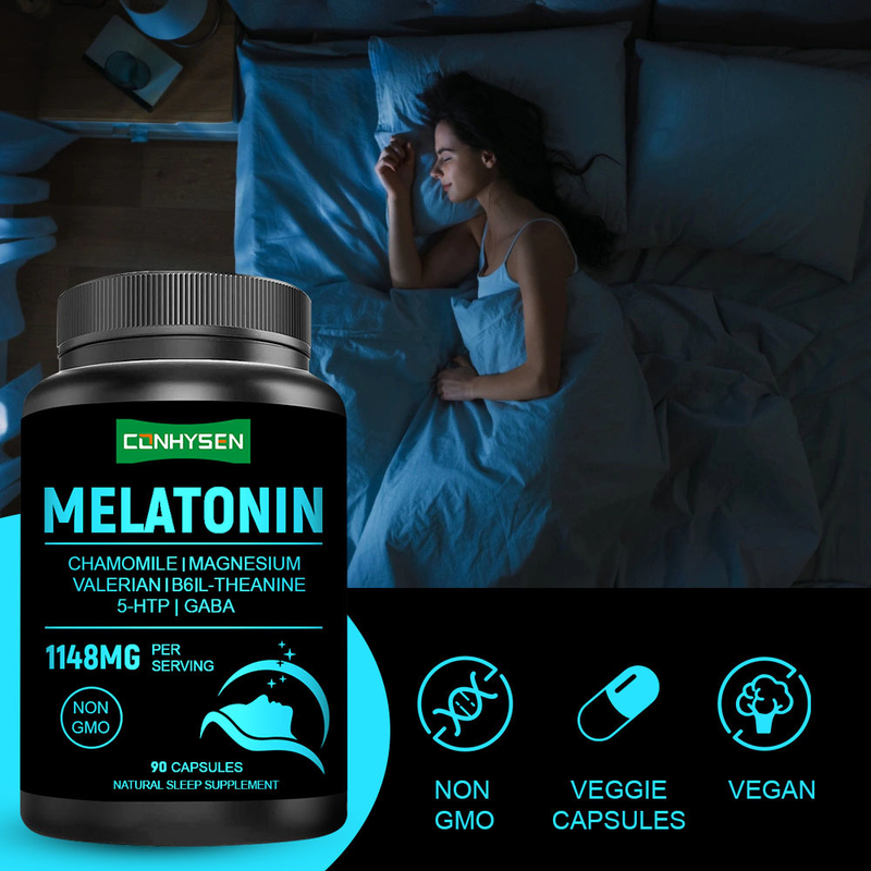 แคปซูลเมลาโทนินแบบกำหนดเอง 1148 มก. จากโรงงานโดยตรง ช่วยเพิ่มคุณภาพการนอนหลับก่อนนอน